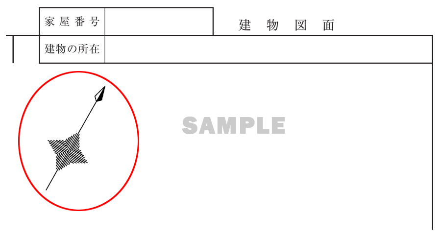 だったら、方位は一旦無視して、この表示されている建物図面の通り、つまり、そのまま用紙に対してまっすぐに敷地を記載してしまえばいいのでは?と思われます。