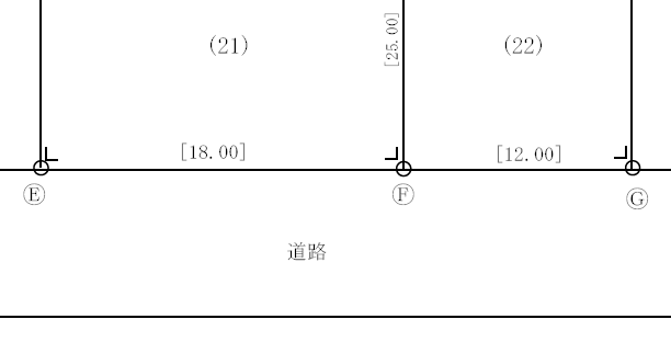 実際の本試験問題では、21番と22番の各図面の方位がわずかにズレており、ABCやEFGが直線でないかもしれないと疑わせる仕掛けがあるのですが、「見取図」にそれぞれの筆界が直角に交わる旨の記号が付されているので、どう考えても直線にしかなりません。